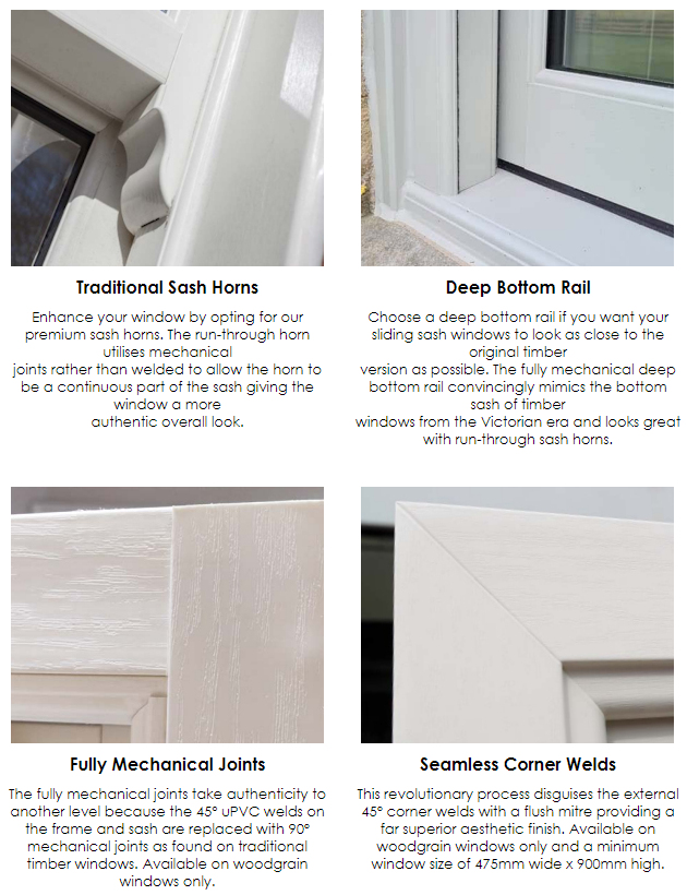 Check out our fantastic range of traditional looking upvc sliding sash windows, suitable for any style of home.